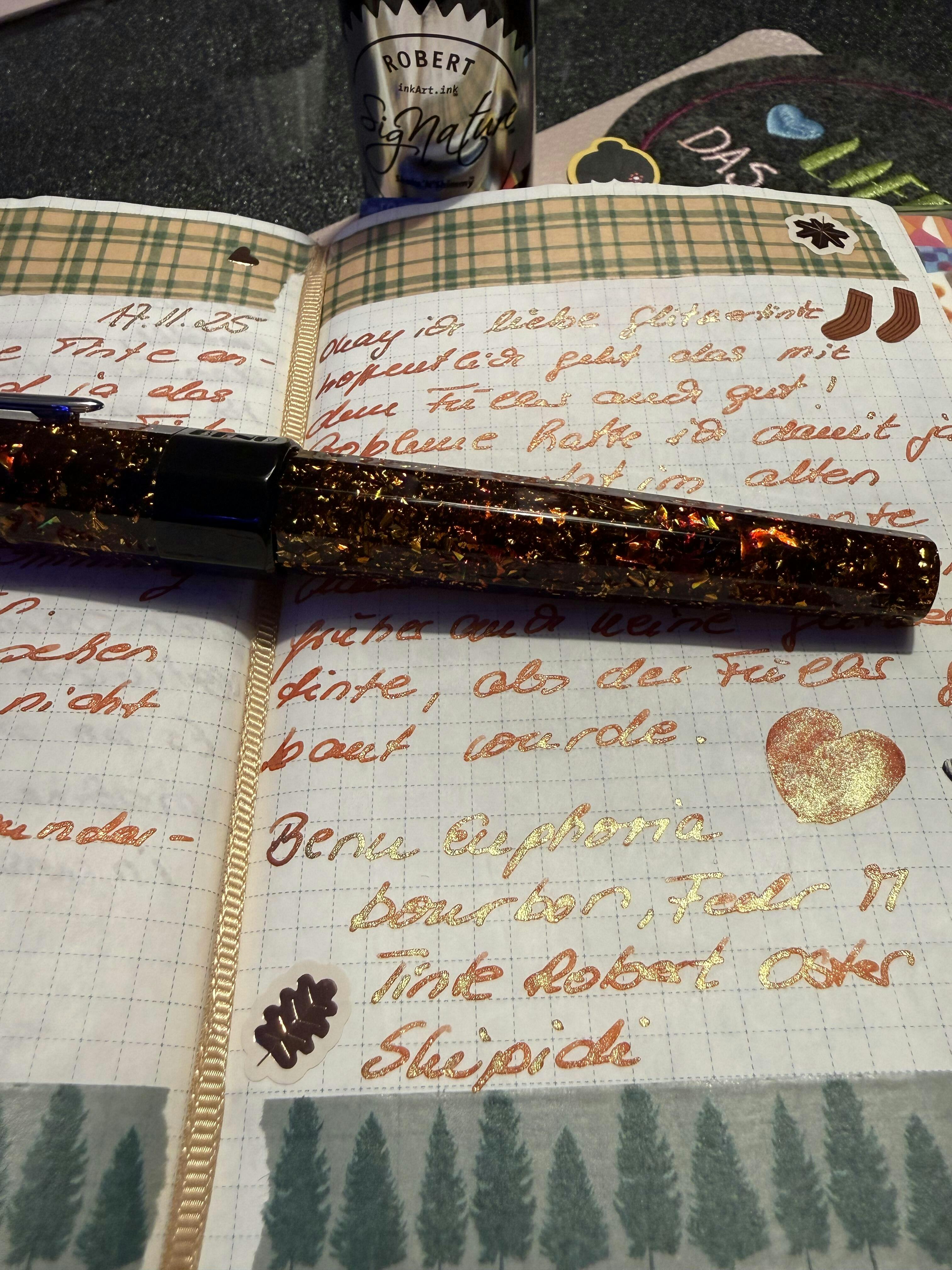 Dieser Füllfederhalter wird mit einem internationalen Standardkonverter und einer langen blauen Tintenpatrone geliefert. Sie können ihn auch auf eine Pipettenfüllung umrüsten.