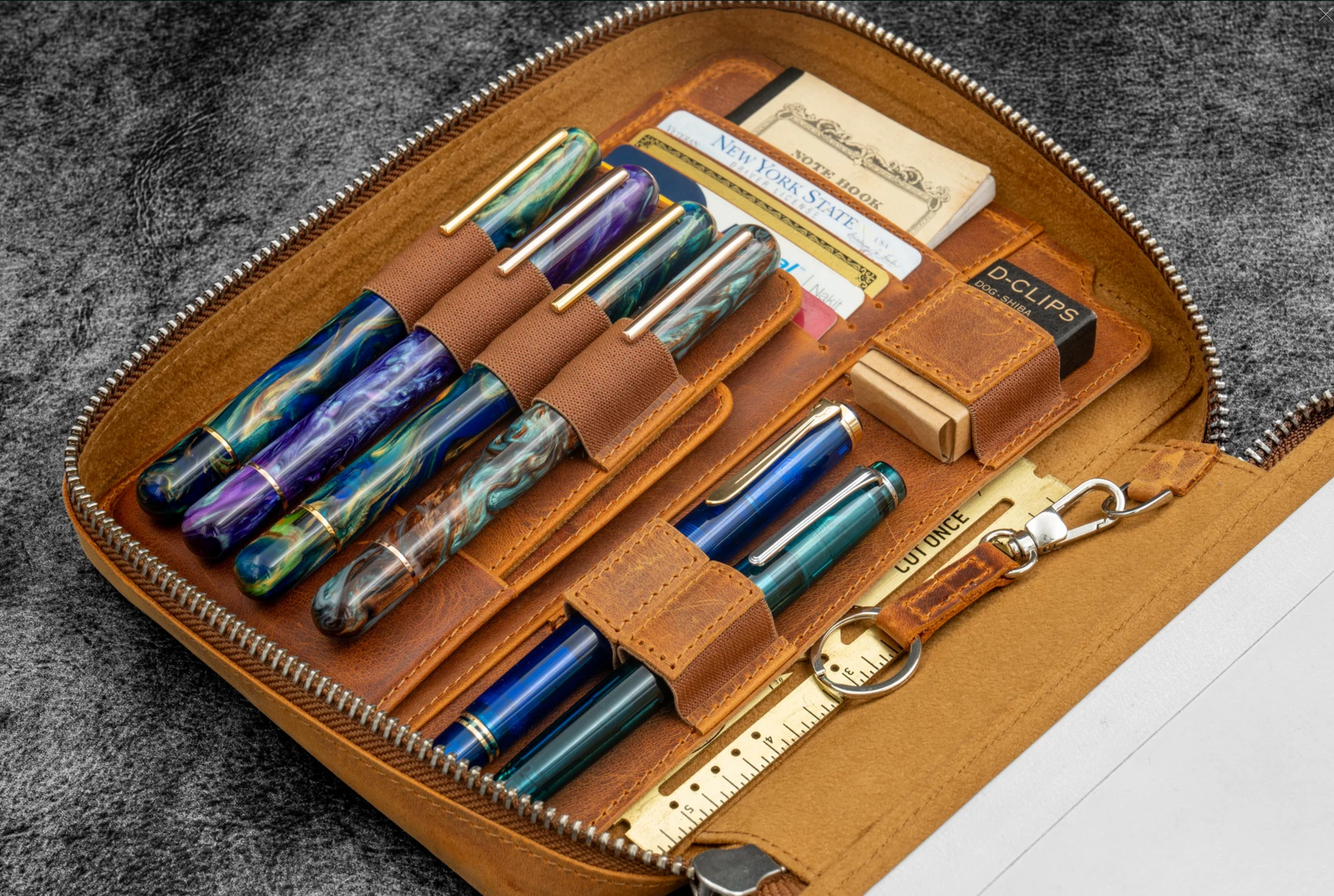 Nach dem Erfolg unseres A5 Regular Zip Folio und zahlreichen Kundenanfragen haben wir uns entschieden, eine breitere Version für dickere, sperrigere Konfigurationen zu entwickeln . Das Expansi Zip Folio war geboren – so konzipiert, dass Ihr Planer und alle wichtigen Accessoires problemlos hineinpassen.