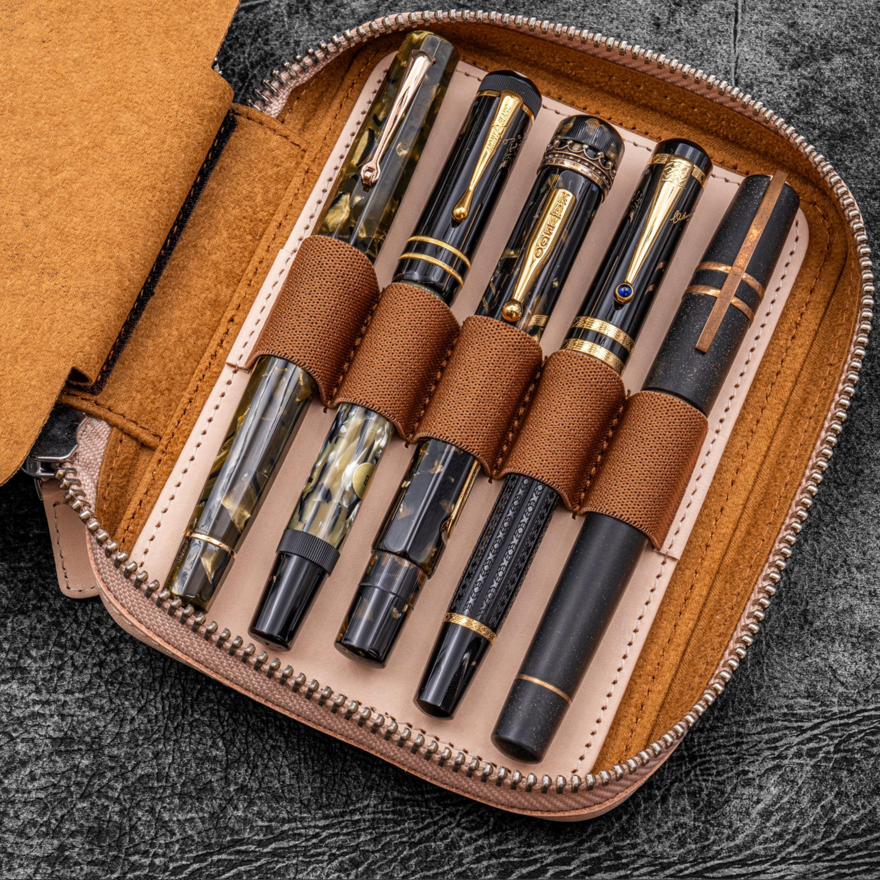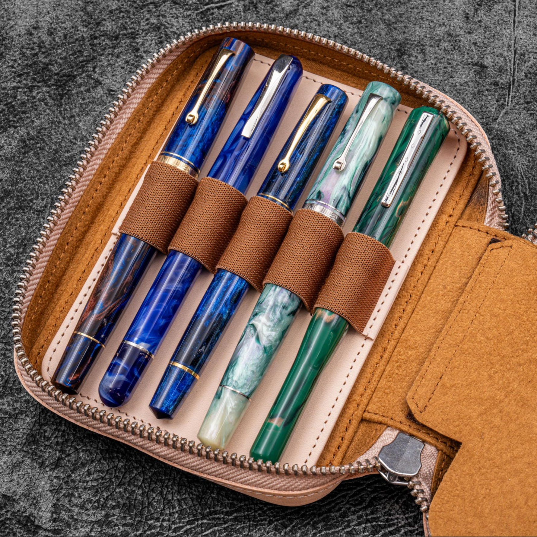 Galen Leather - Expansi-Pouch Leather Wide 10 Slots Pencase - A6 Zip Folio - Undyed