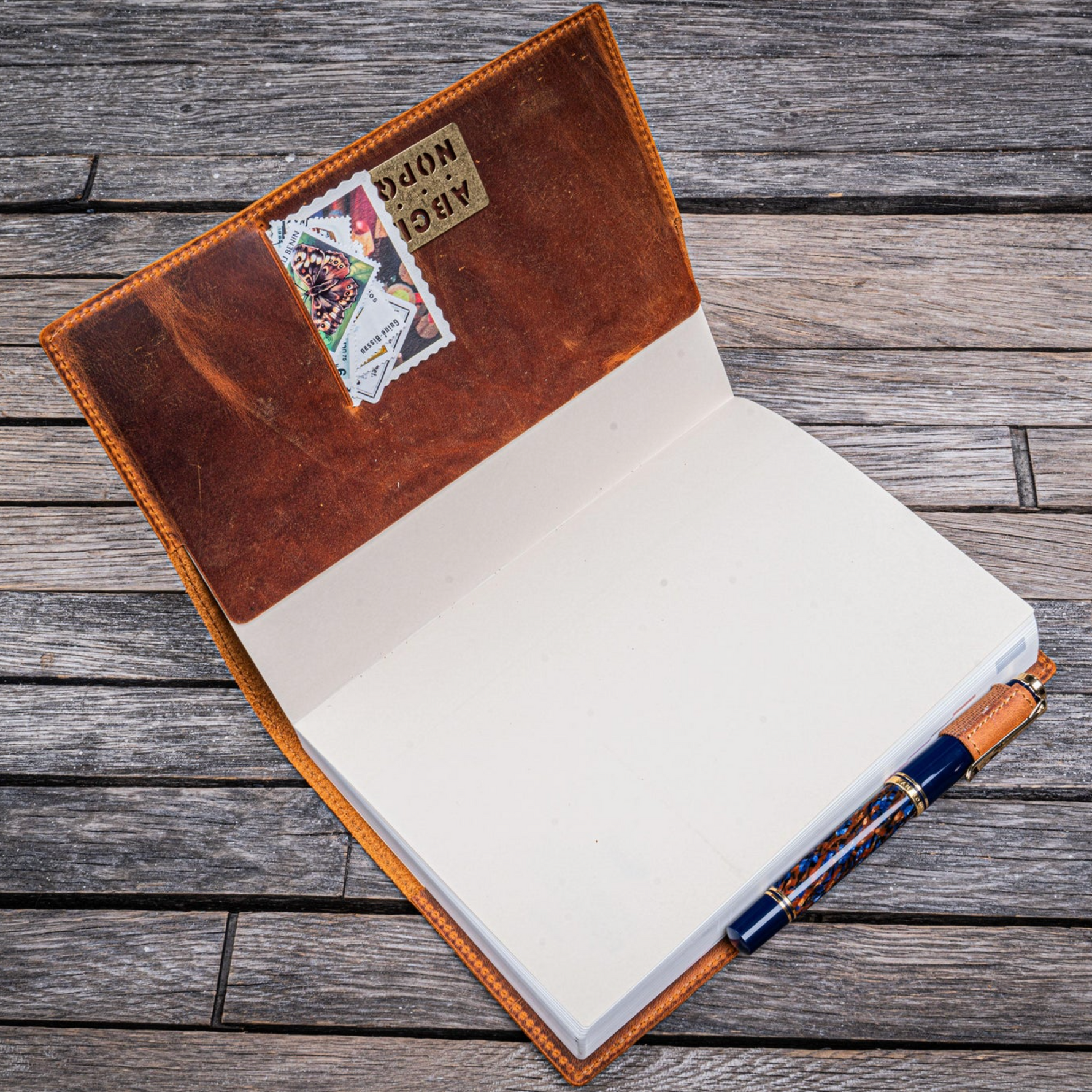 Dieser Ledereinband passt für Galen Everyday Books, Stalogy 365, Life A5, Apica CD A5, Logical Prime A5, Midori MD A5, Hobonichi Cousin A5, Kleid A5, Yamamoto A5, Nanami A5, Galen Leather Notebooks A5. Und alle Notizbücher mit weichem Einband im A5-Format.