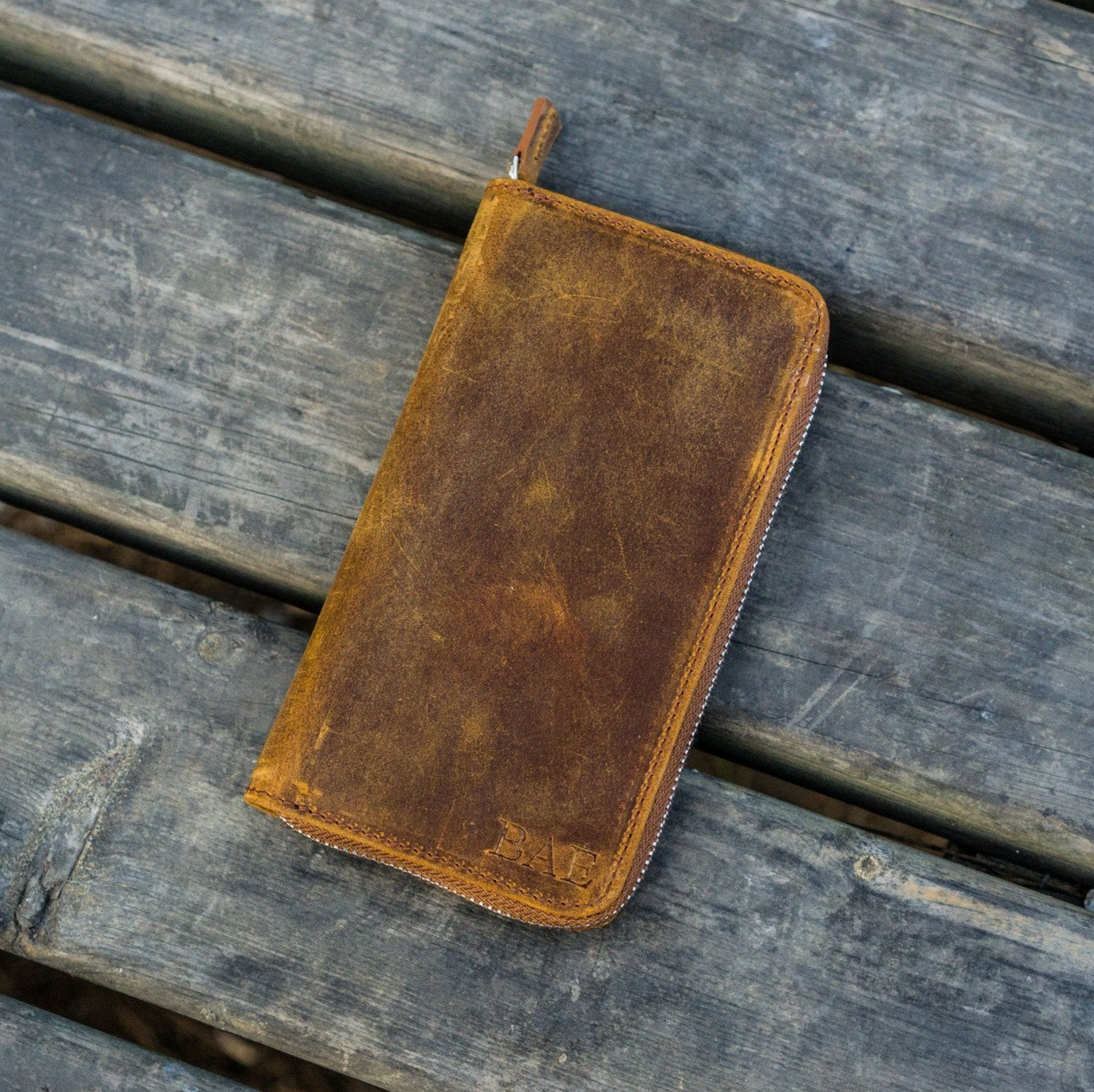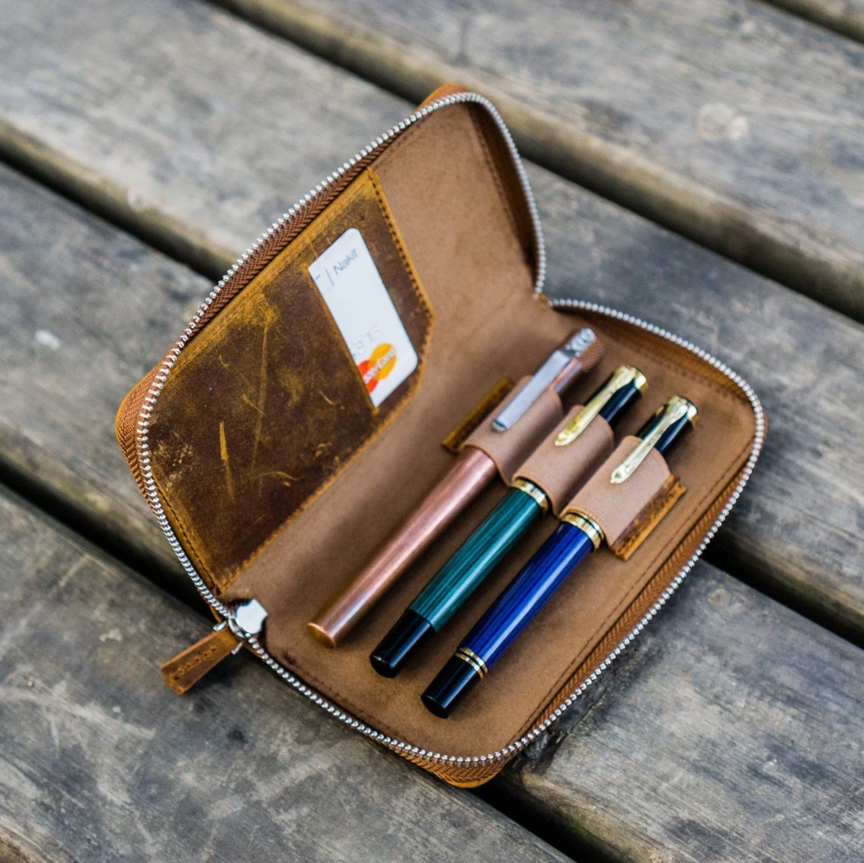 Handgefertigtes Stifteetui aus Leder mit Reißverschluss und 3 Fächern