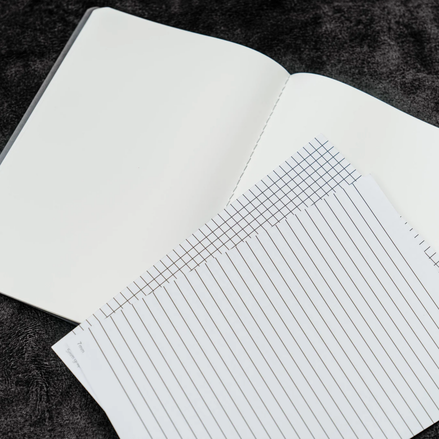 Unsere speziell gefertigten Notizbücher im A5-Format bestehen aus weißem TomoeRiver-Papier (52 g/m²), das als besonders füllfederhalterfreundliches Papier gilt. Jedes Notizbuch enthält 128 Seiten und ist handgebunden.