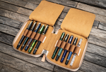 Handgefertigtes Stifteetui aus Leder mit Reißverschluss und 10 Fächern