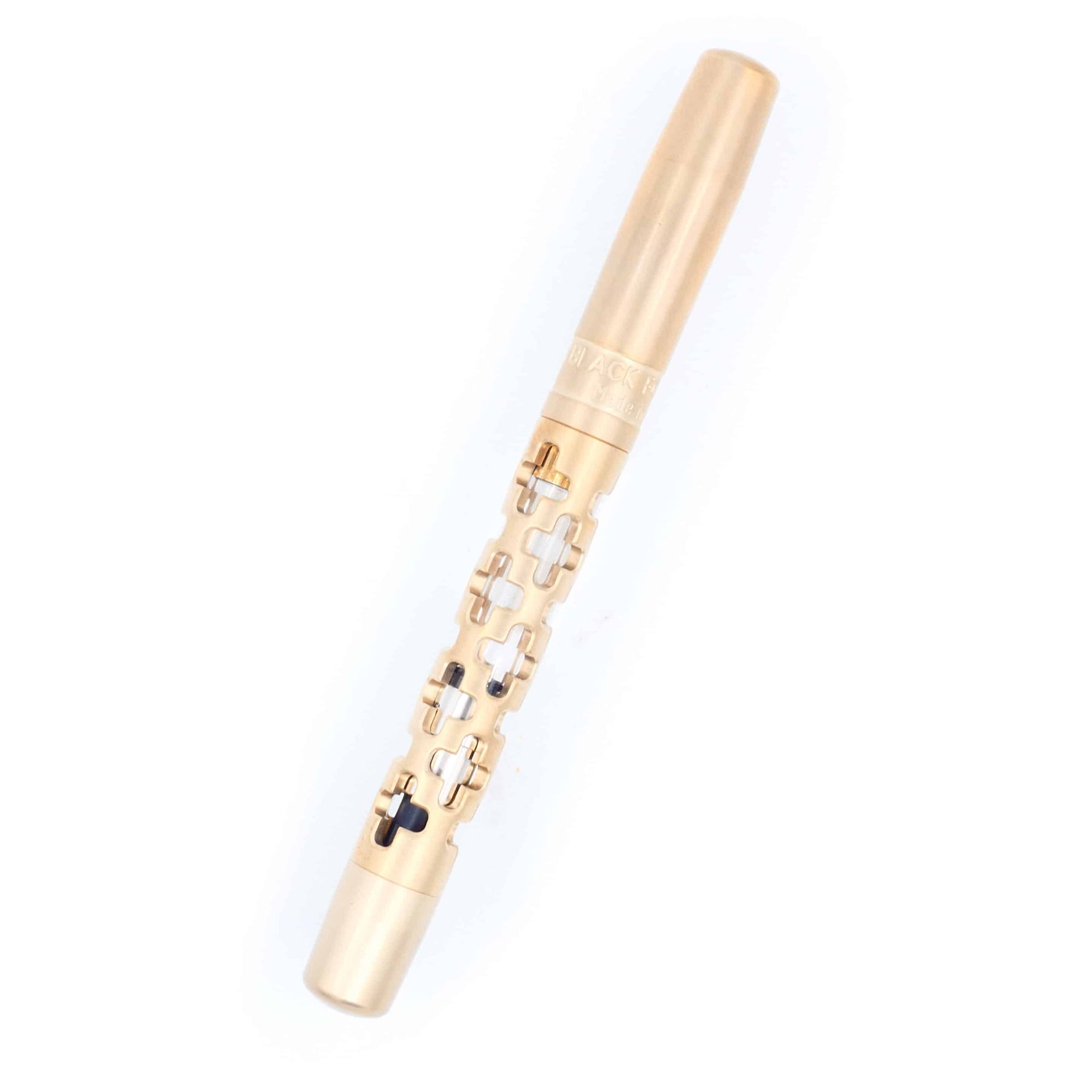 Charakteristisch für sein Design sind die präzise gefrästen, durchgehenden Kreuze, die dem Füller nicht nur seinen Namen geben, sondern in auch deutlich von herkömmlichen Schreibgeräten abheben. Dieses Skelettierung verleiht ihm eine einzigartige Leichtigkeit und ermöglicht einen faszinierenden Blick ins Innere.