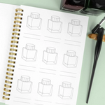 Das Wearingeul Tintenfarbmusterbuch hat das Format A5 (148 x 210 mm) und umfasst 40 Seiten (360 Tintenfässerabbildungen Abbildungen von Tintenfässern, mit denen Sie Ihre Tintensammlung nach Farbe, Marke und verschiedenen Themen ordnen können. Unter dem Fässchen befinden sich zwei Zeilen für Tintenname/Marke und einen kurzen Schreibtest.
