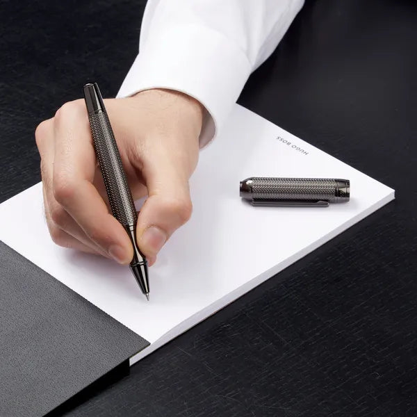 All dies basiert auf einem zeitlosen, stabilen Rahmen, der das bestmögliche Schreiberlebnis gewährleistet. Diese Linie ist in zwei monochromatischen Farbvarianten erhältlich: Chrome und Gun, die beide auf kontrastierenden matten und glänzenden Oberflächen spielen.
