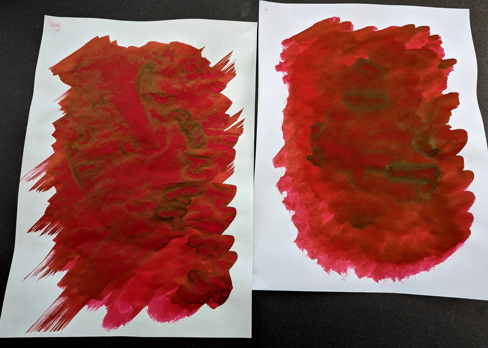 Unser gesättigtstes Rot aller Zeiten, mit einem kräftigen Goldglanz auf Tomoe River und anderen guten Papieren.
