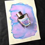 Diese Tinte spiegelt die duale Natur der Kollektion perfekt wider. Auf den meisten Papieren bildet sie eine neblig-lavendelgraue Basis mit changierenden Überlagerungen aus Blaugrün und Rosa, die sich manchmal in staubige Lichthöfe oder marmorierte Farbflächen auflösen. In breiten Federn oder bei nassem Auftrag entstehen blaugrüne Flüsse, wie ein klarer Himmel, der hoffnungsvoll durch die Wolkendecke bricht. Es ist eine Farbe, die sanft und ruhig wirkt, aber nicht ohne Leben – eine ruhige Tinte für ruhige Seiten und nachdenkliches Schreiben.