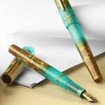 Dieser Füllfederhalter wird mit einem Standard-Konverter und einer langen blauen Tintenpatrone geliefert. Er kann auch auf Pipettenbefüllung umgerüstet werden..